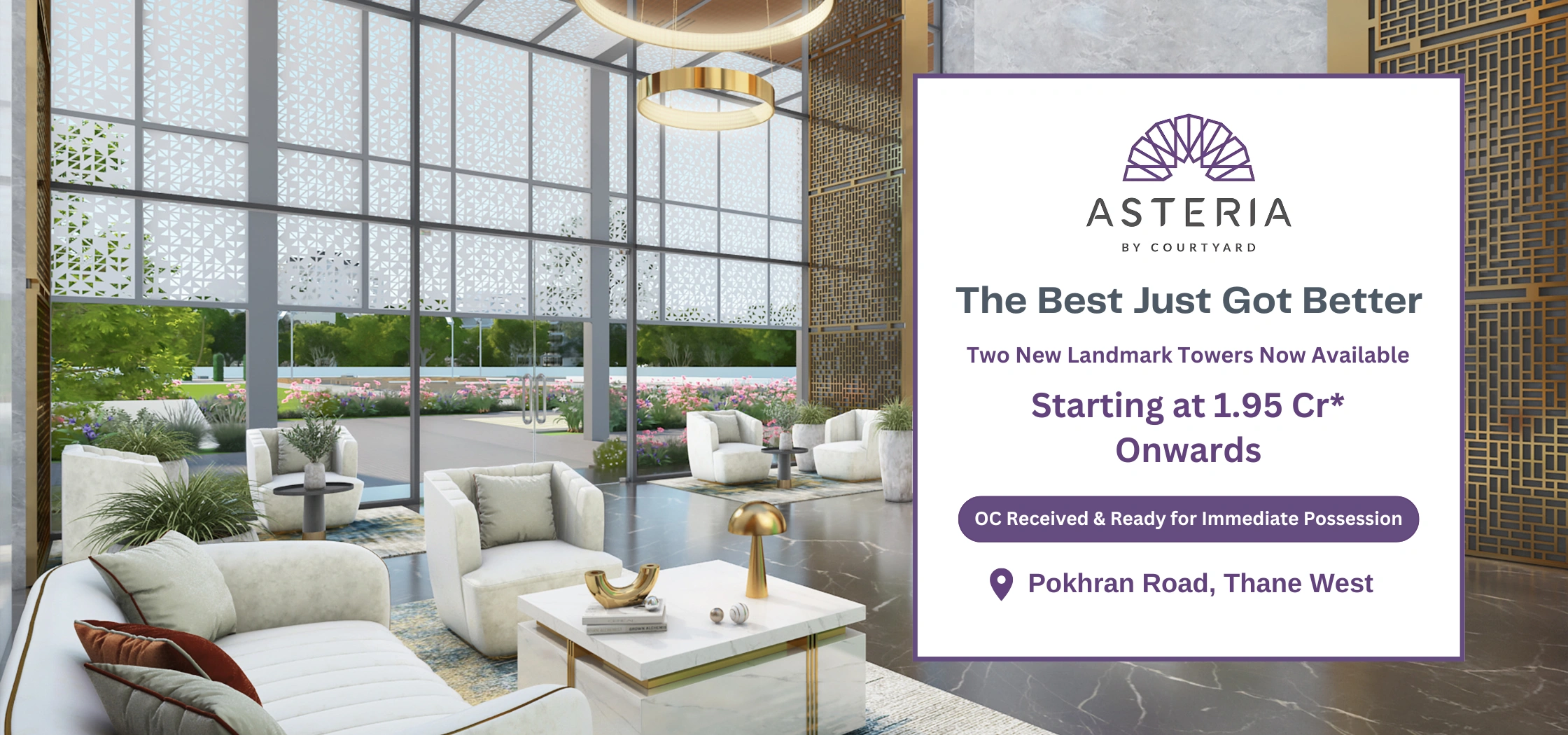 Welcome to Asteria by Courtyard, the finest upcoming residential project in Thane, offering a selection of the best and most premium 2 BHK, 3 BHK & 4 BHK Luxury Apartments on Pokhran Road, Thane.